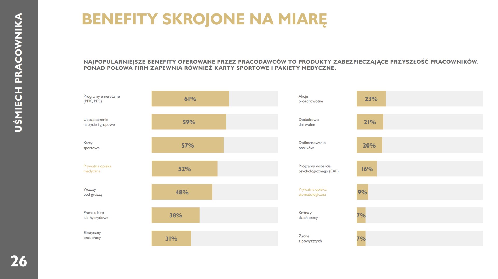 Już nie laptop czy telefon z nielimitowanymi minutami powinny być benefitami, na które powołują się pracodawcy chcący przyciągnąć wartościowego pracownika, a właśnie abonamenty i pakiety opieki medycznej uwzględniające profilaktykę i zdrowie jamy ustnej. To korzystne dla każdej ze stron